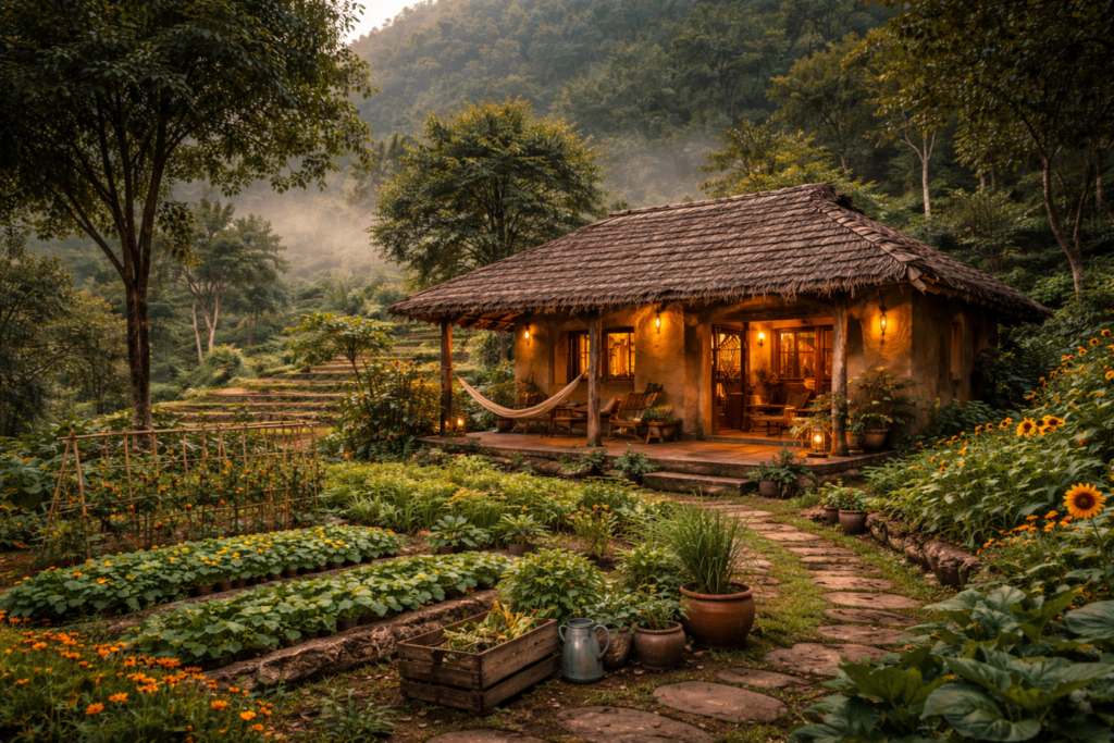 Located closer to the farm areas of the village, these cottages allow guests to experience the rhythm of slow rural life — waking up to birds, walking through orchards, and enjoying the quiet simplicity of the hills.