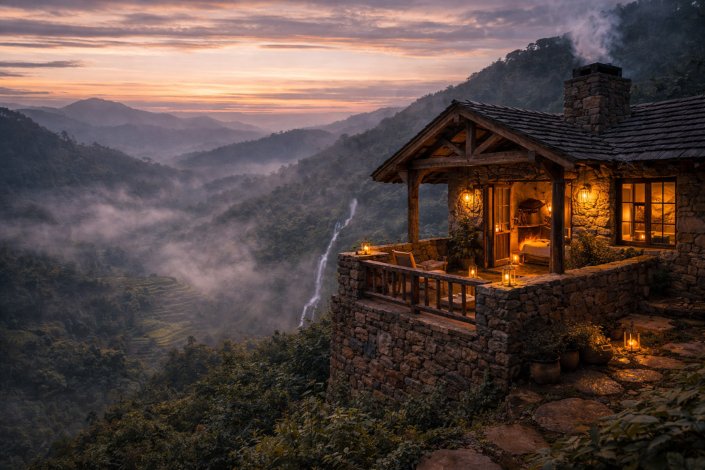Built with natural mountain stone and warm timber interiors, our stone cottages offer a cozy hillside retreat. A fireplace, soft lighting, and quiet forest surroundings create a space designed for slow evenings, misty mornings, and deep rest.